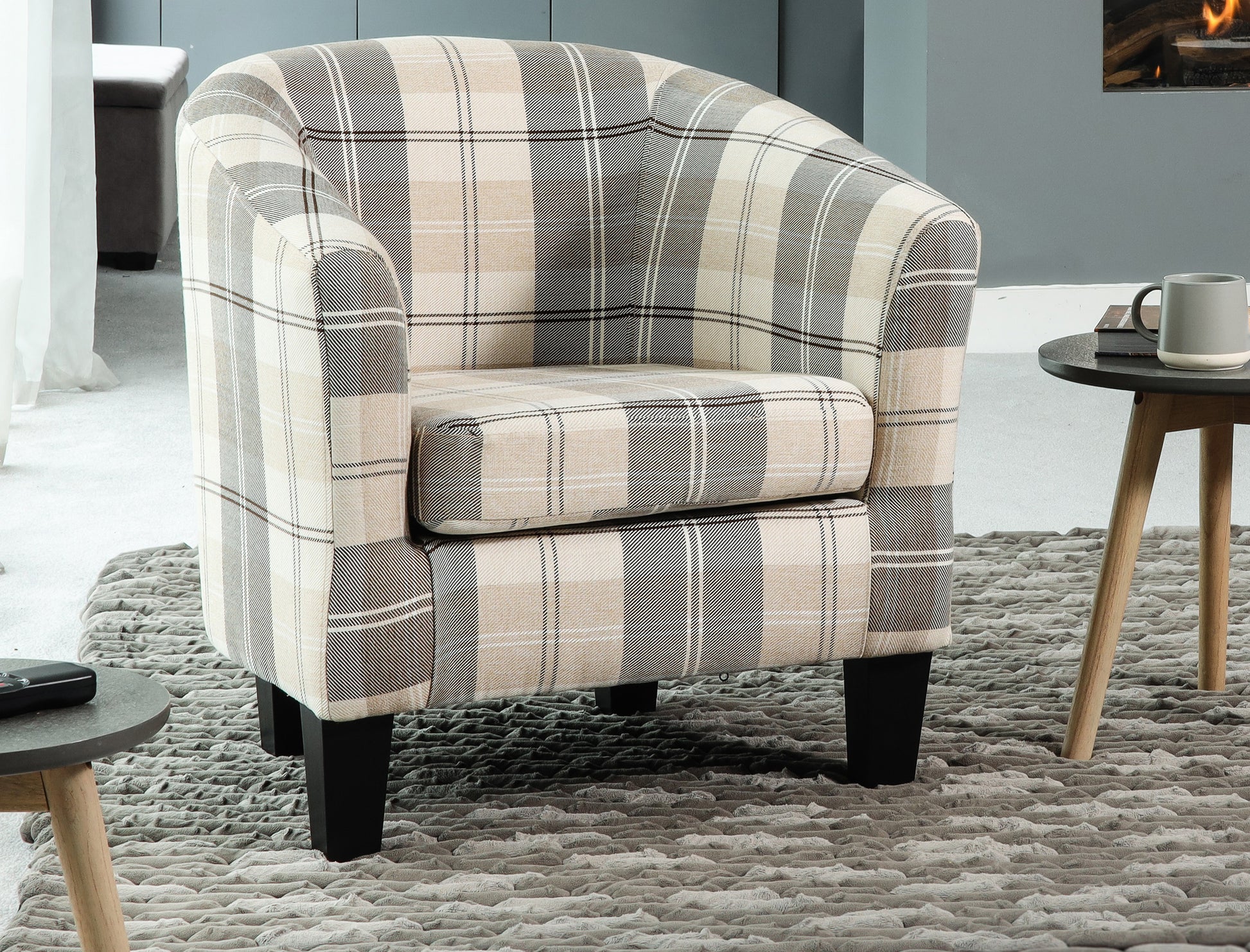 The chequered patter on the fabric has proven instantly popular with customers and the classic tub chair design is perfect for adding extra seating without taking too much space.