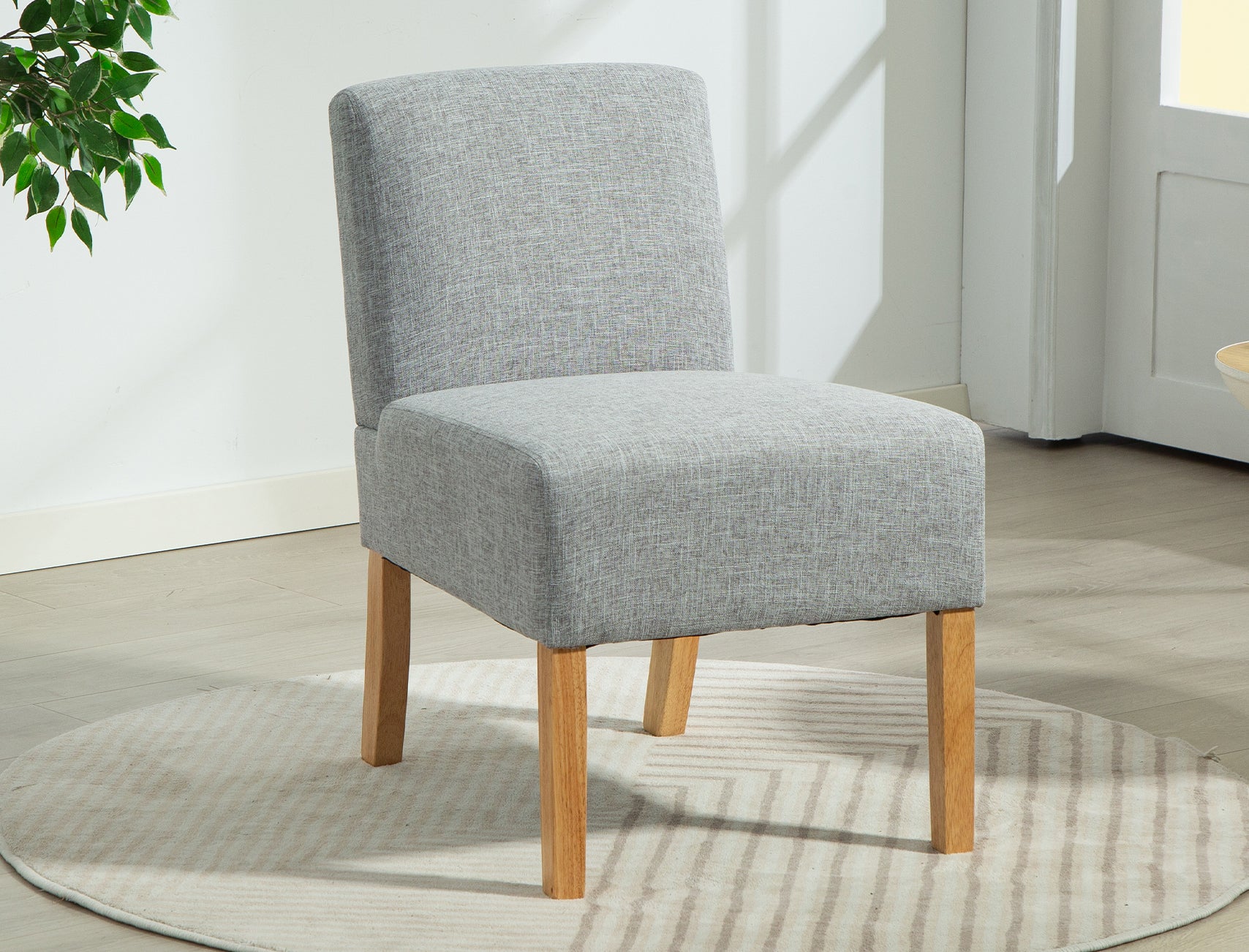 The Woodhay accent chair blends comfort and style with its soft fabric upholstery and sleek, compact armless design - perfect for smaller spaces or as a stylish extra seat. The foam-filled seat cushion ensures a supportive and cosy sit, while the light wooden legs add a sophisticated touch to its contemporary look. With quick, efficient delivery, the Woodhay is an effortless way to elevate your home interior.